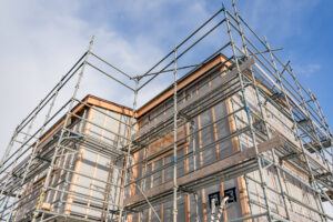 ・枠組足場は高い建物や大規模工事で使用され、強度と安定性に優れています。